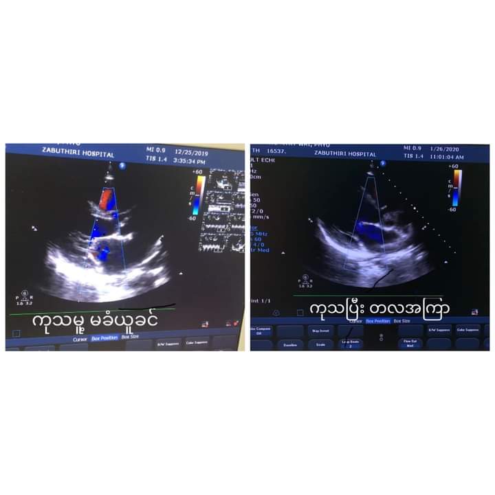 ဒေါက်တာ သက်ဟိန်း ( နှလုံးအထူးကု) #puerperium cardiomyopathy# ဒီဓာတ်မှန်နဲ့ လူနာ မိန်းကလေးကတော့ သားဦးမွေးပြီးပြီးခြင်း နှလုံးယောင် နှလုံးအားနည်း ခံစားရပြီး ဆေးကုသမူ့ ခံယူခဲ့ပါတယ်။တစ်လ အကြာမှာ နှလုံး ညှစ်အား တိုးတက်လာတဲ့ အတွက် ရာနှုန်းပြည့် ပြန်ကောင်းနိုင်ချေ ရှိပါတယ်။ အားလုံးပဲ သက်ရှည် ကျန်းမာနိုင်ကြပါစေ။