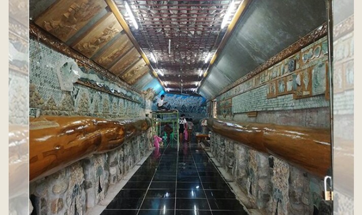 “လိုဏ်ဂူတော်မှာ ကျောက်စိမ်းအချောထည်တွေ မပါဘဲ အကာသားချည်း တန်ချိန် ၃၀၀ အသုံးပြုထားပါတယ်။ နောက်ပြီး လိုဏ်ဂူတော် ထဲမှာ ကာလပေါက်ဈေးအရ သိန်းပေါင်း သောင်းချီတန်တဲ့ အဖိုးတန် ကျောက်မျက် ရတနာတွေကိုပါ ထည့်သွင်းအသုံးပြုထားတဲ့အတွက် ကျွန်းတံခါးနဲ့ စတီးတံခါး နှစ်ထပ်နဲ့ လုံခြုံရေး အပိုင်းကိုလည်း ဆောင်ရွက်ပေးထားပါတယ်” ဟု ဦးခင်မောင်ကြီးကပြောသည်။