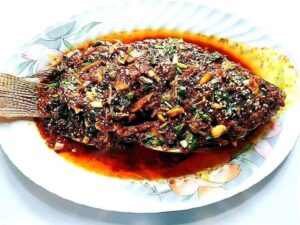 နောက်ဆုံးမှာ ကော်မှုန့်ရေဖျော်ထည့်ပြီးမွှေကာ ငါးပေါ်သို့လောင်းချကာ အရသာရှိတဲ့ ငါးချဉ်စပ်ရပီနော်။